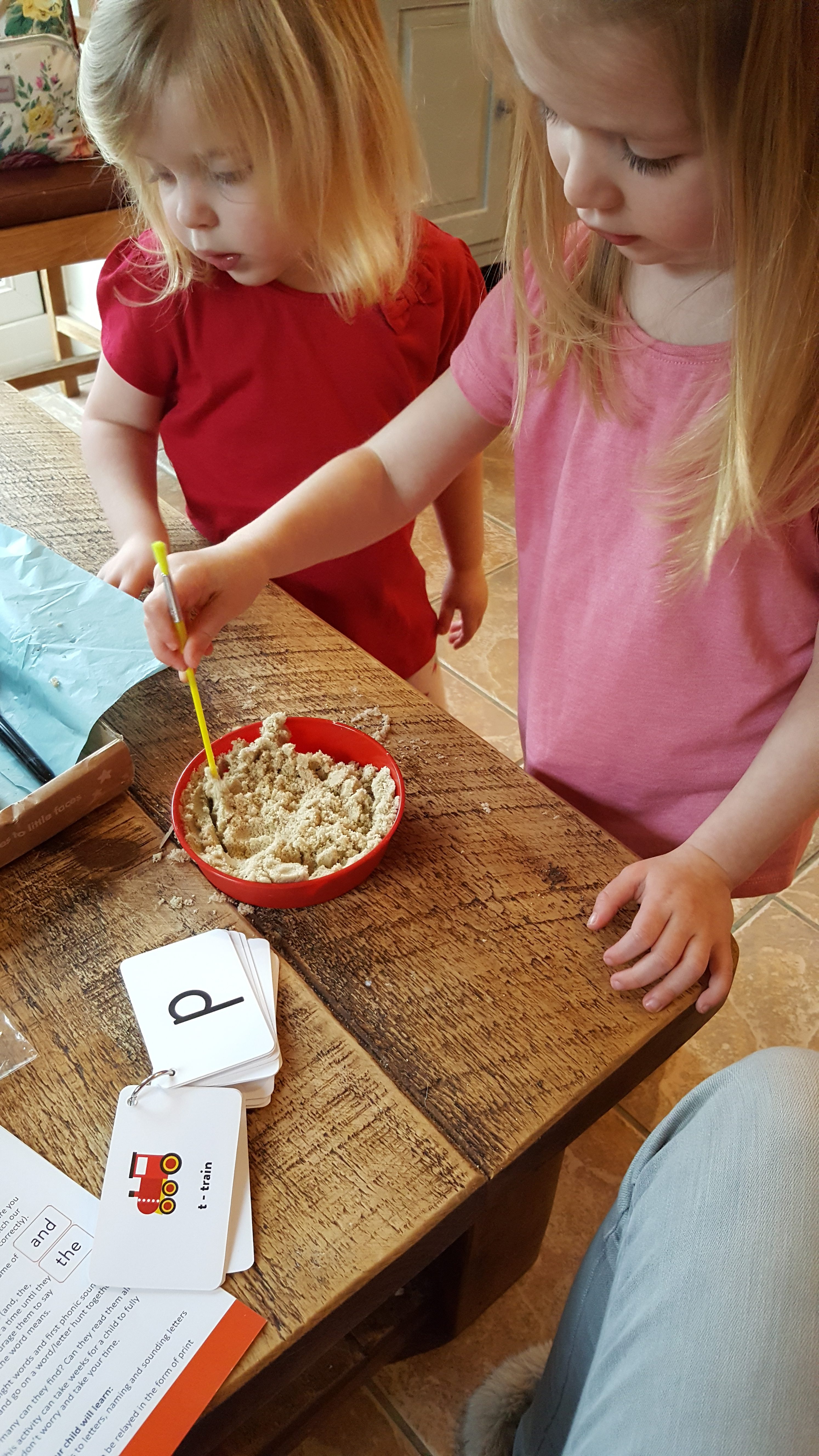 The box we receive introduced us to Lucas Lion whose focus is Literacy. Inside there was a key ring with single letters, simple key word and mark making patterns to practise. Whilst I’m not the greatest fan of flash cards, these are great to use with the mini sand tray also provided. I simple couldn’t get it out quick enough and straight away Emily wanted to ‘write’ in the sand with the end of a paintbrush.