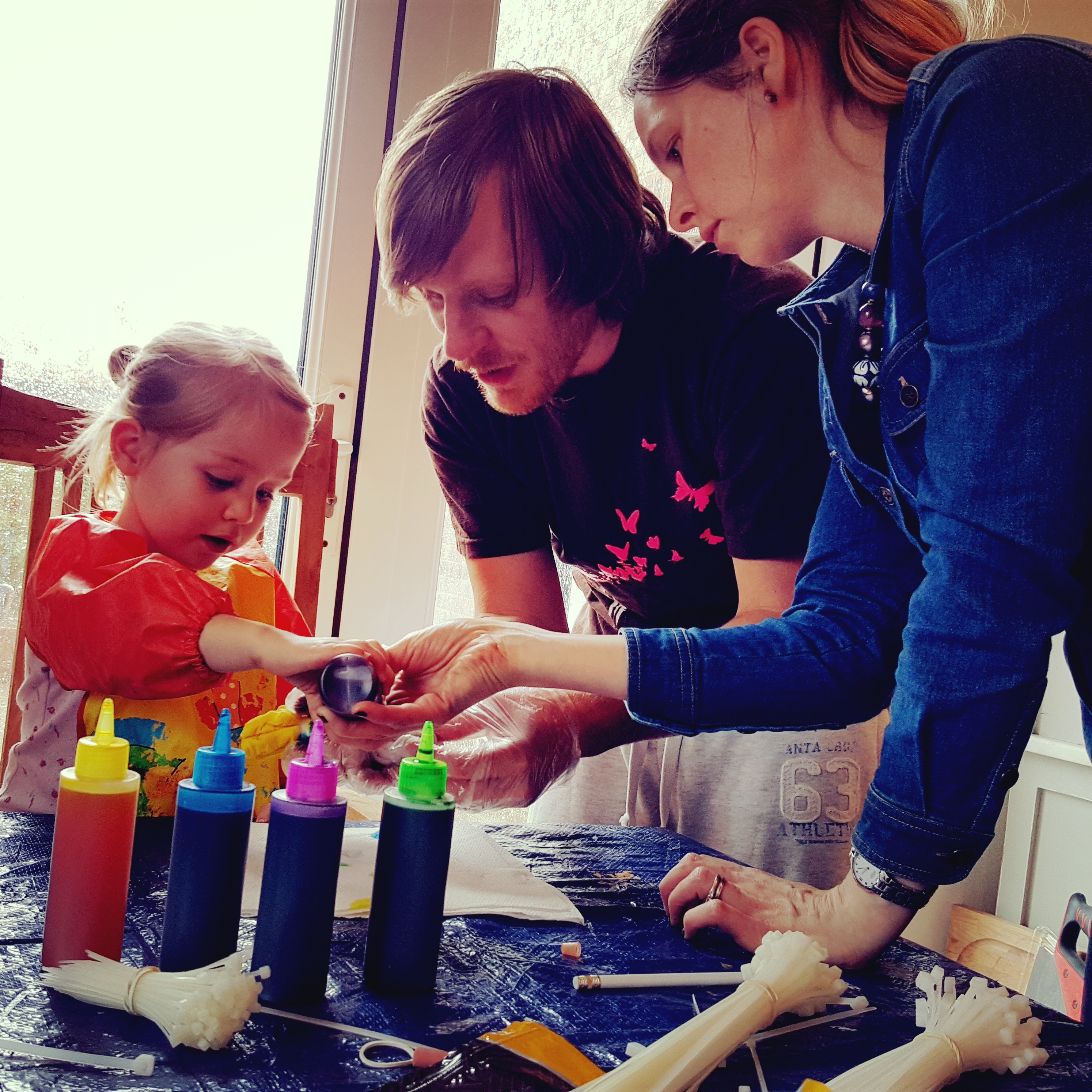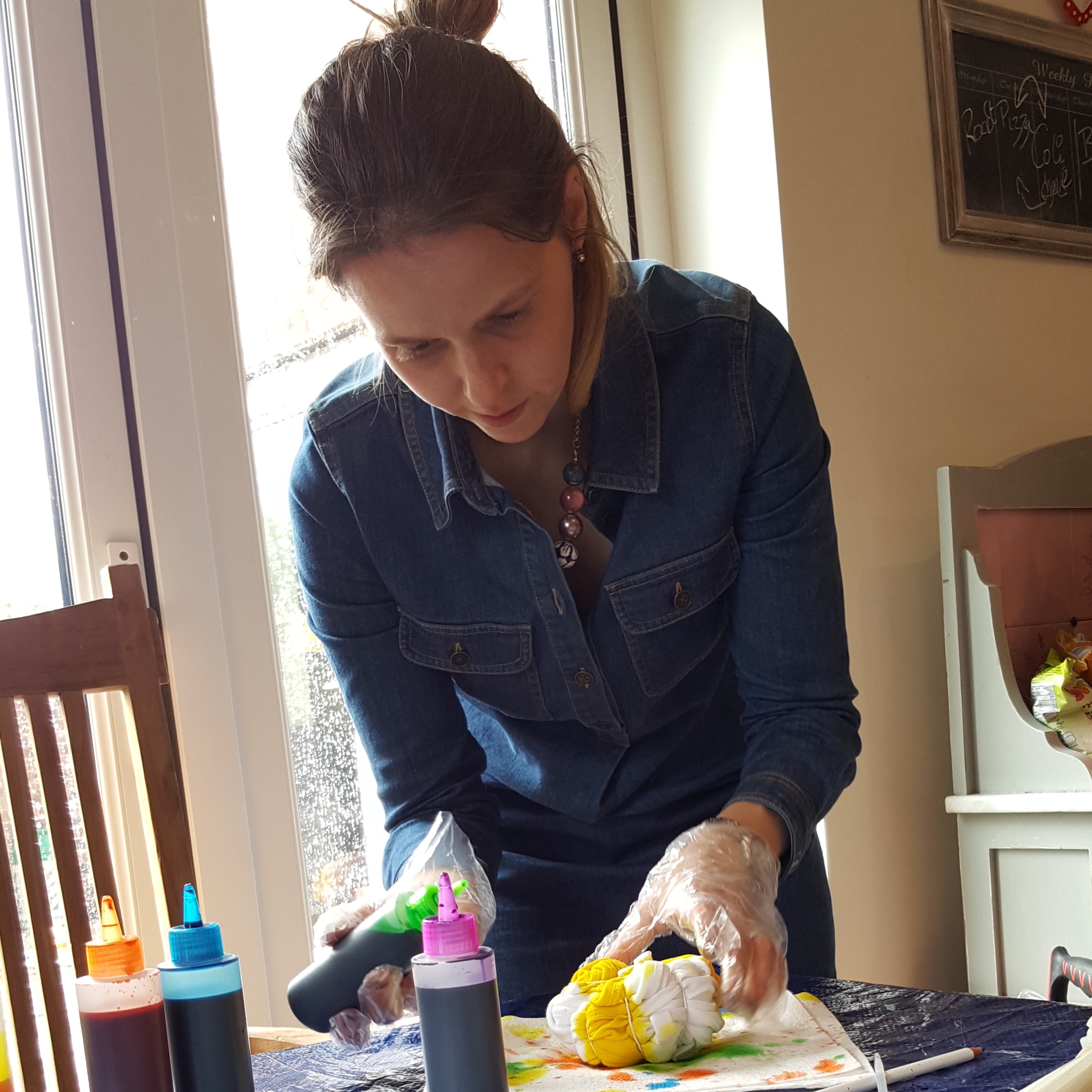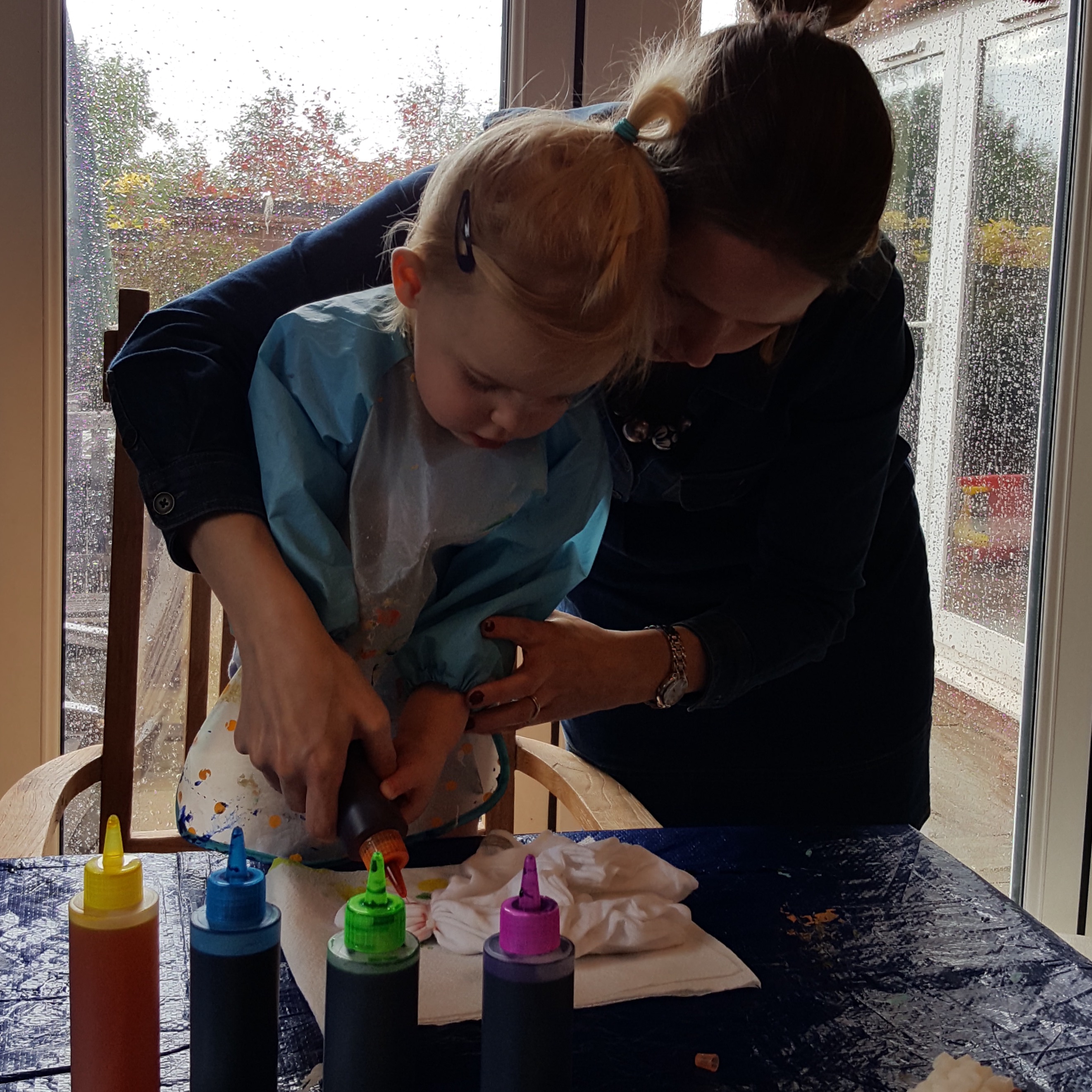 We took the riskier option of actually involving our girls with the dying but you could easily do all the prep with them and leave the messy part (which is pretty quick) until they are in bed. Have you ever tie dyed? If not, why not give it a try. It was great and now we have fun family outfits as a momento.