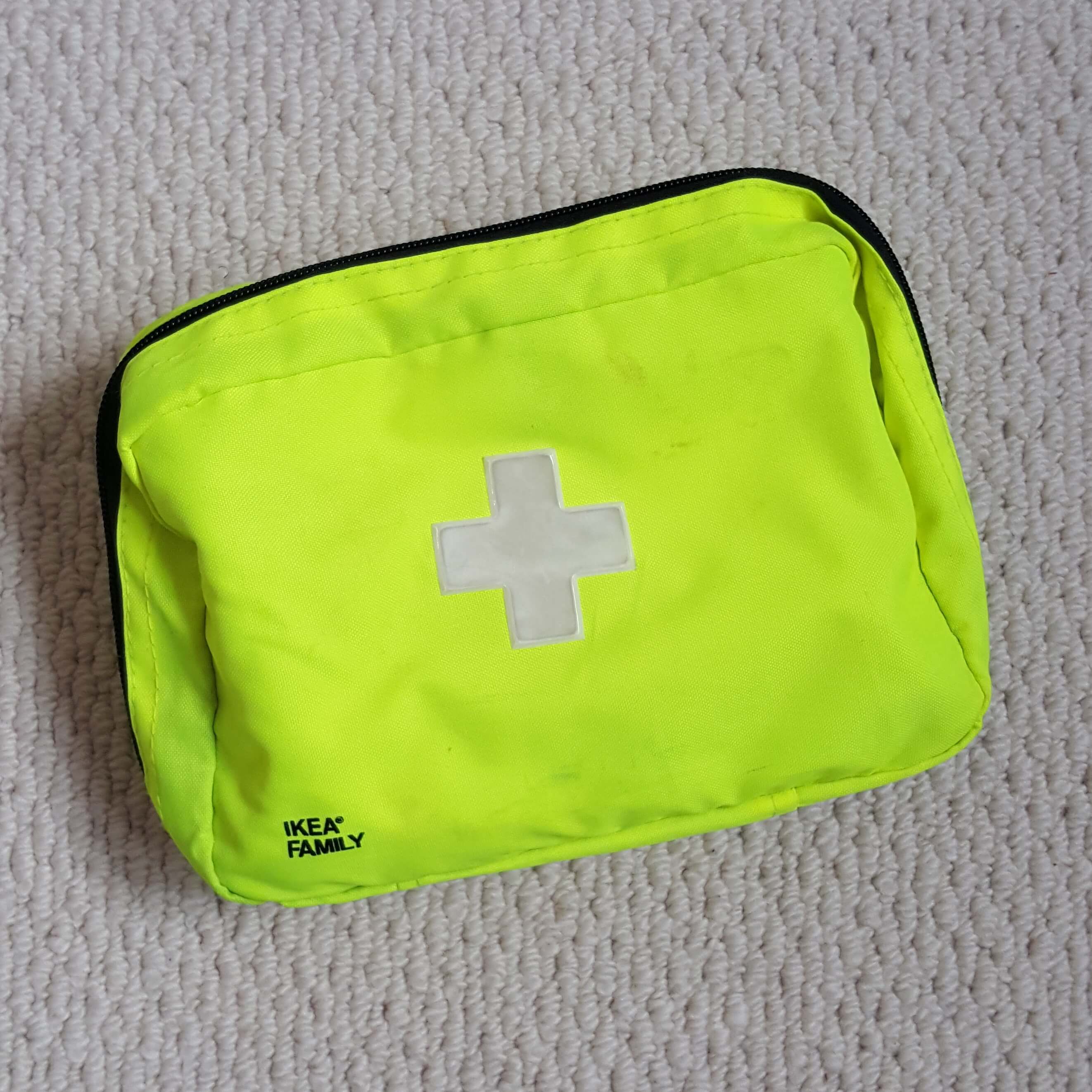 One of cons of travelling with young children is taking them to unfamiliar places and not quite knowing what’s could happen. As a parent we want to be as prepared as possible and so a family first aid kit is an essential. We picked up our one from Ikea and it came with a few basic such as plasters and bandages.
