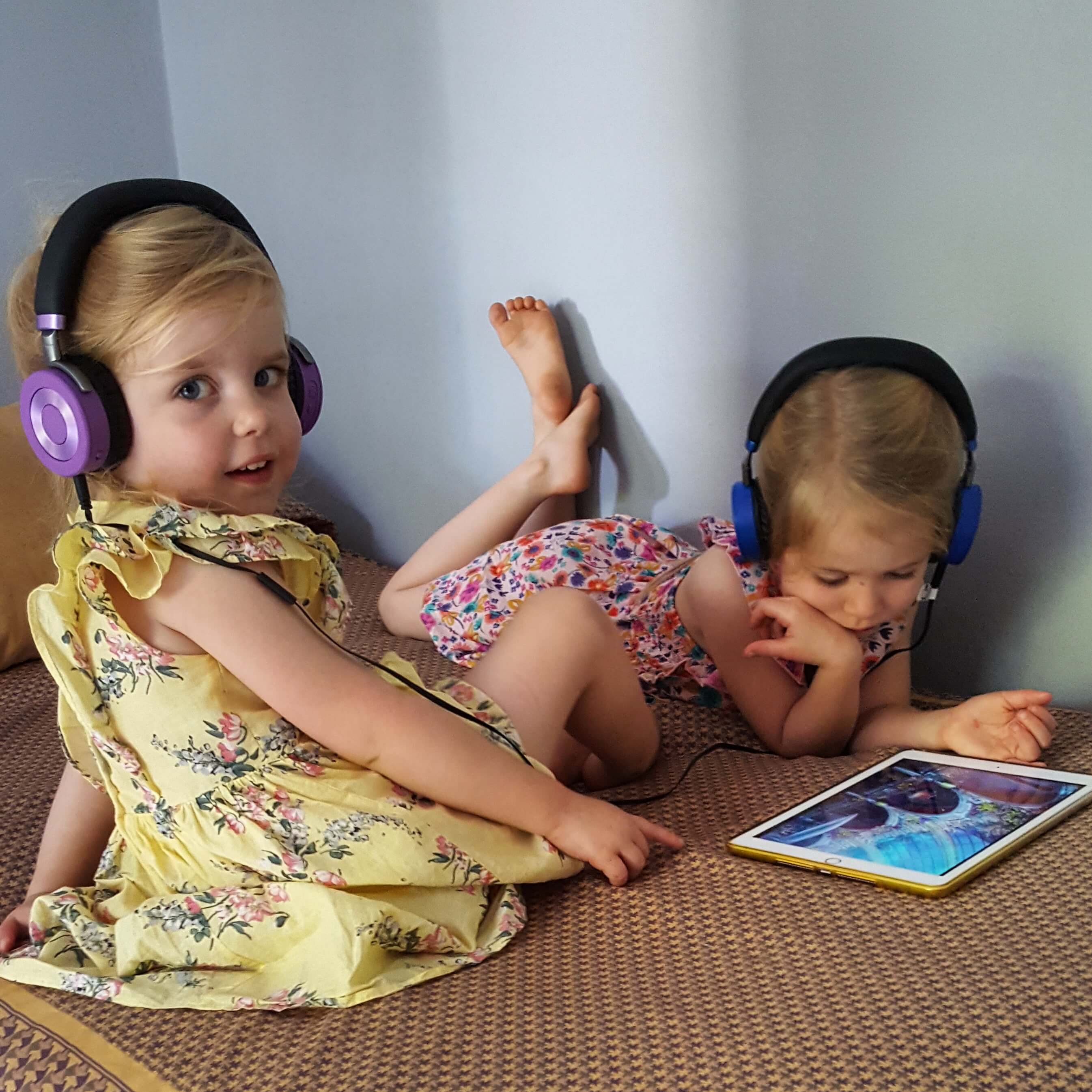 These ones from Puro Sounds Labs are fantastic and come in four bright colours. They fold into their own slim case which is perfect to fit in your hand luggage. Best of all, they can connect together so two can watch and listen together if they can only agree what to watch.