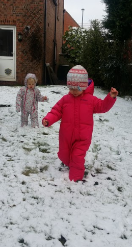 For British standards it was fairly thick but the forecasts said it wouldn’t last long. Therefore, our morning was spent rushing through breakfast and making sure Jess had a wee before we layered up and braved the cold. Snowsuits-check, wellies-check, mummy’s hair brushed?..not a chance.