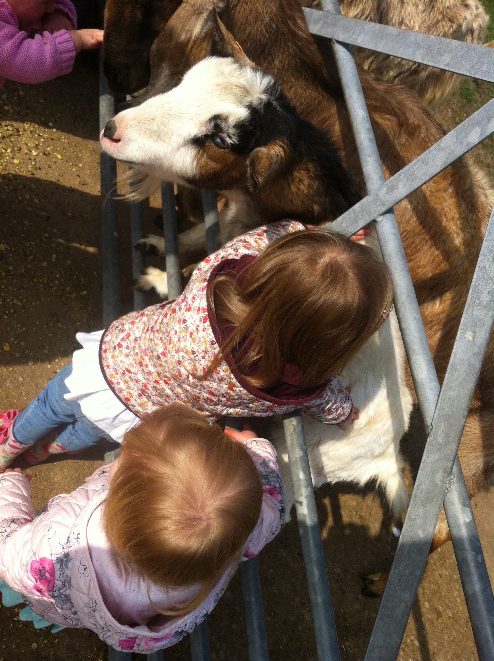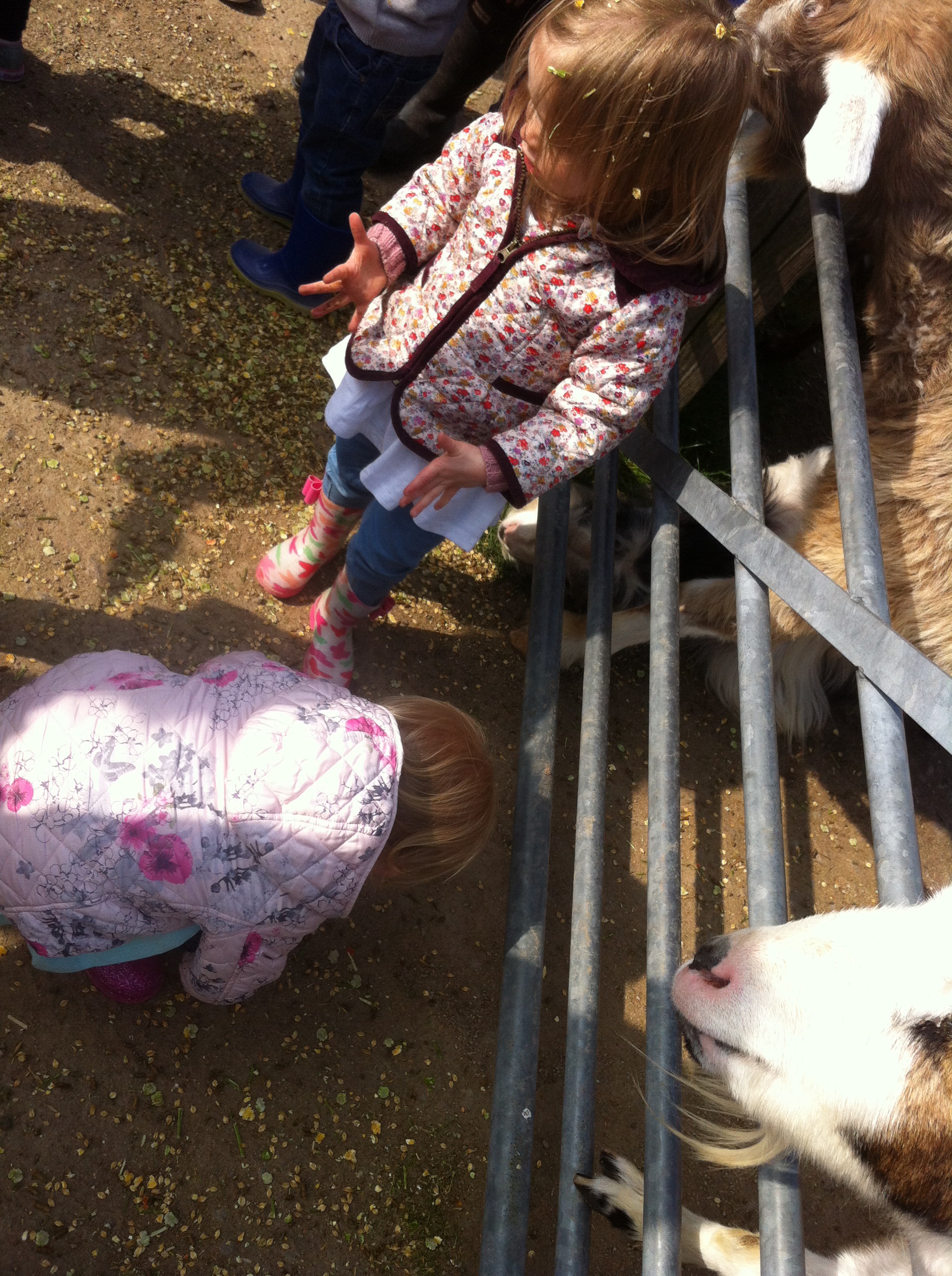 Although my girls are pretty outgoing, put them near an animal that’s bigger than them and it’s not surprising they are cautious. This is good. Obviously I wouldn’t want them to get hurt. That being said, family farms are generally a pretty safe place to build confidence with animal in the knowledge that these animals are used to being stroked and fed by little ones. After a little encouragement and mummy having a go, they both got hands on with snakes, rats and goats.
