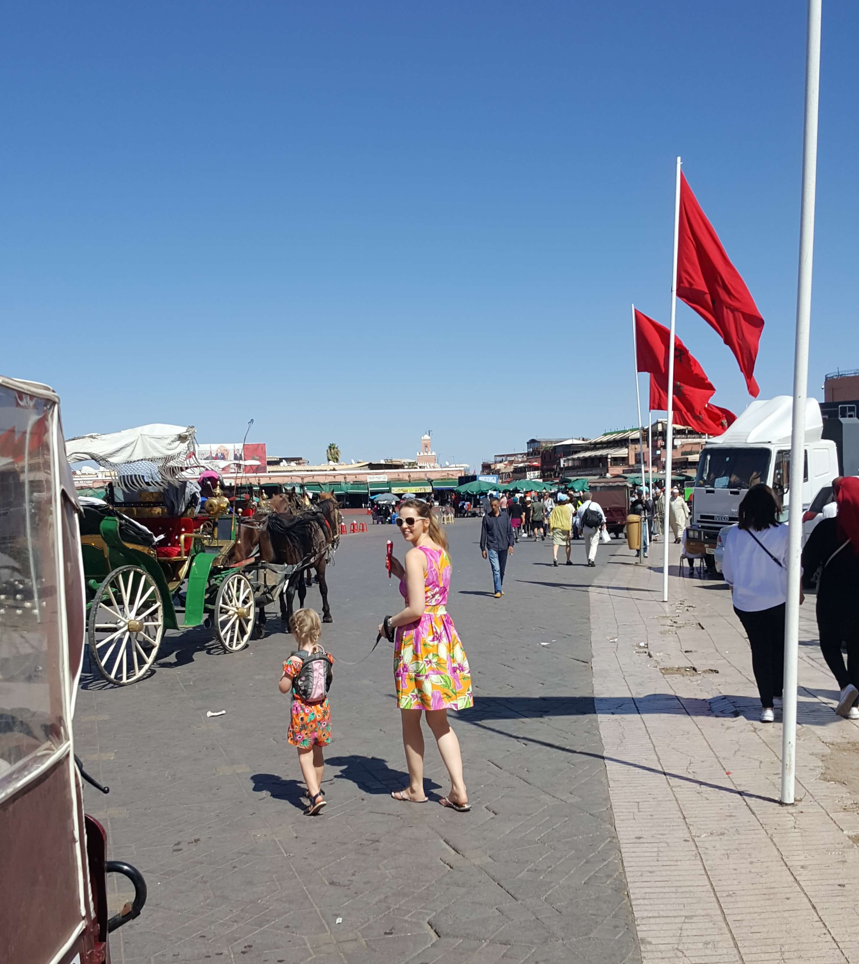 We were in walking distance of this iconic market square. Before arriving, we’d read that it was best to explore during the morning as by early afternoon it gets very busy and would be difficult to navigate with children. If we were travelling just the two of us, I’d have love to experience the hustle and bustle in the evening but even during the day there was plenty to see. We took in the colourful stalls, tried some Moroccan food and enjoyed numerous bargain juices from the many fruit stands.