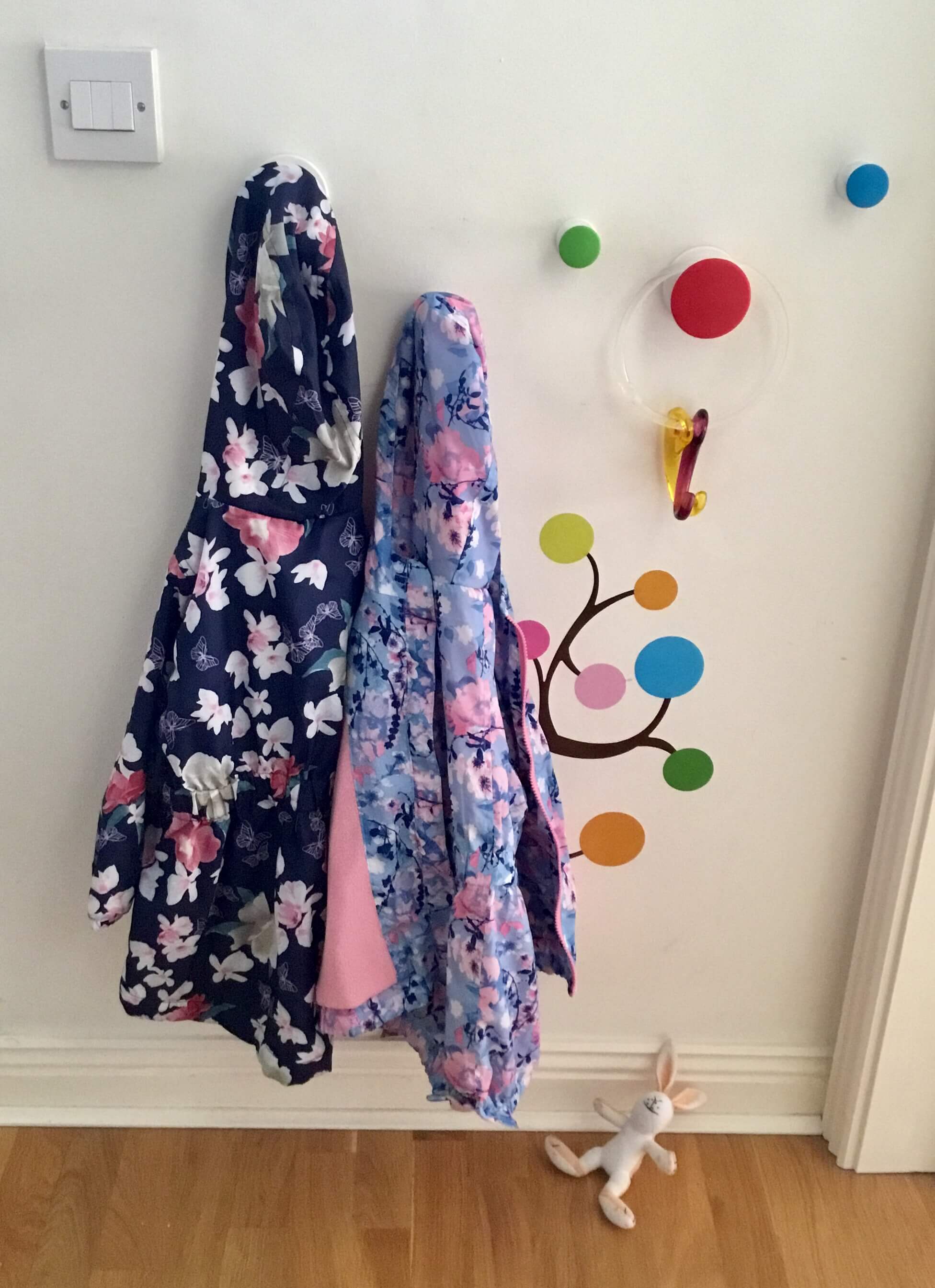 Encourage little ones to hang up their own coat and shoes bY giving them their own pegs and accessible shoe storage. Not only does it mean you don’t have to do this but it teaches a little independence and prepares them for when they’ll need to do this at preschool/school. We picked up colourful pegs from Ikea for a few pounds and they just stick straight to the wall.