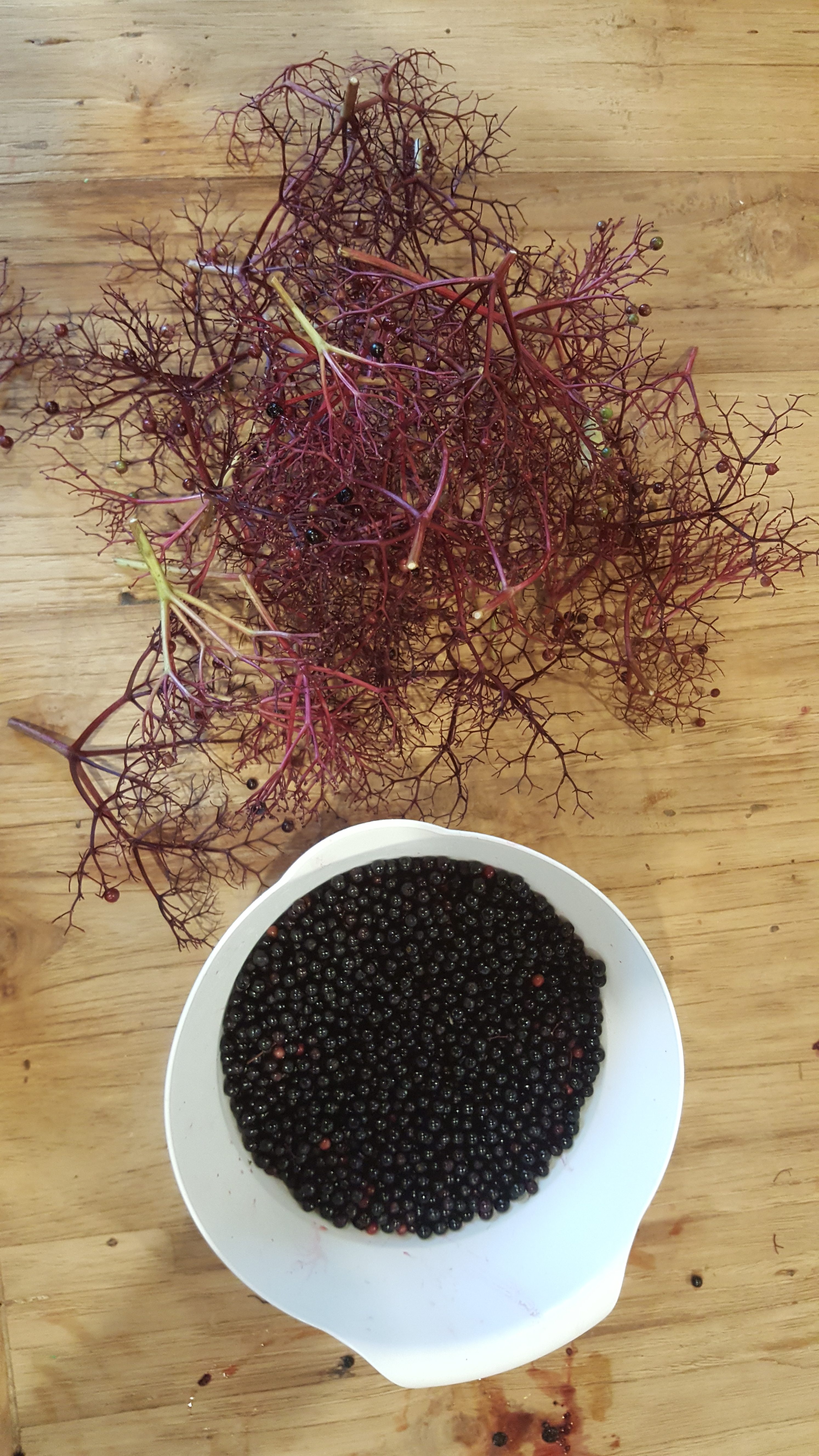 I’d envisaged them doing this but of course the bundles needed to be snipped off. Regardless, they enjoyed holding the bowl. Next came the less than fun task of removing all the berries from the stems. Again they wanted to help and I wanted them to help too but it was fiddly and the berries stained. From this point, there was nothing else they could help with.,
