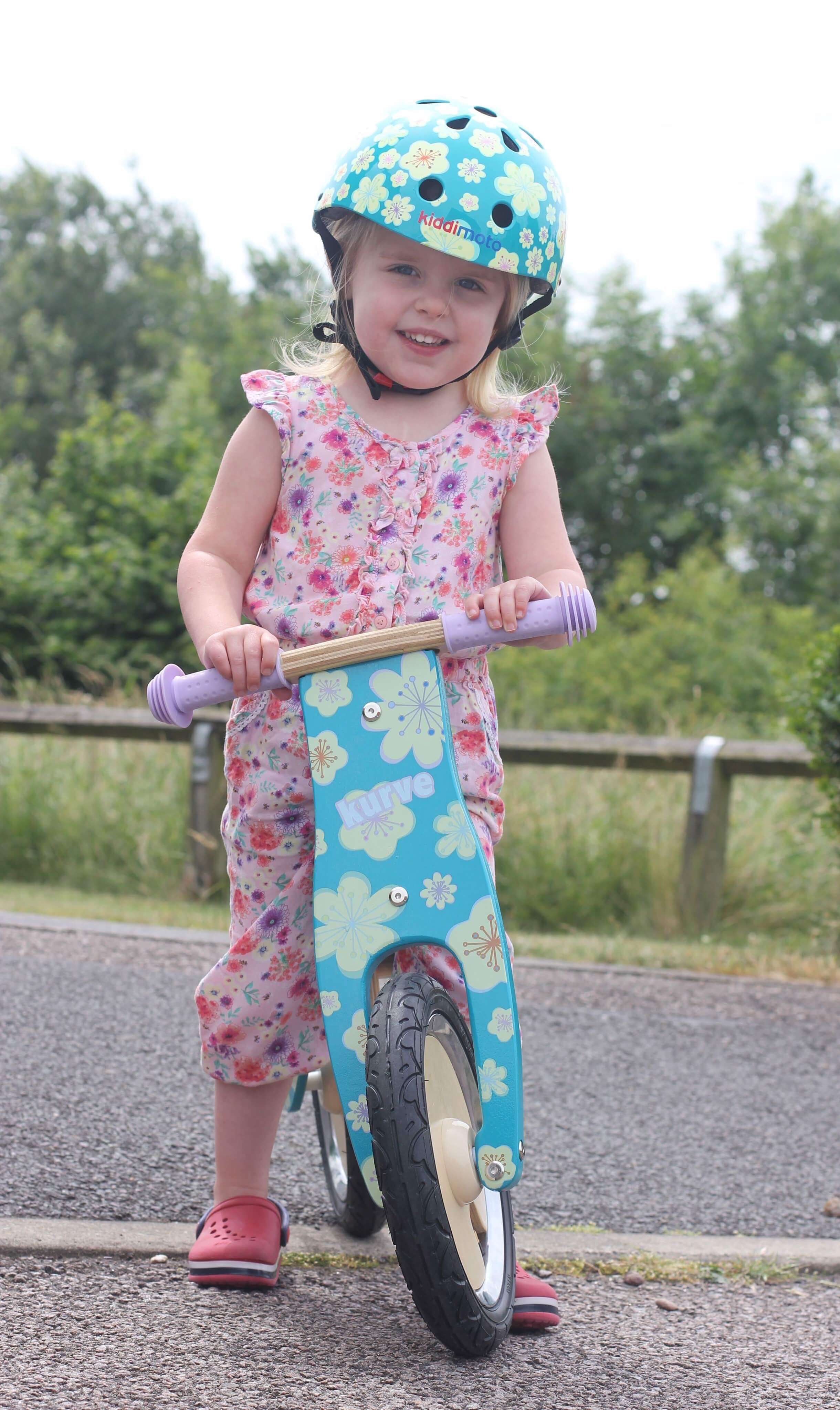 There are lots of companies out there now offering balance bikes but I was quickly drawn to Kiddimoto for their sturdy award winning bikes and fun designs that I knew the girls and I would love. We opted for the Fleur and Pastel Dotty wooden balance bikes and matching helmets.