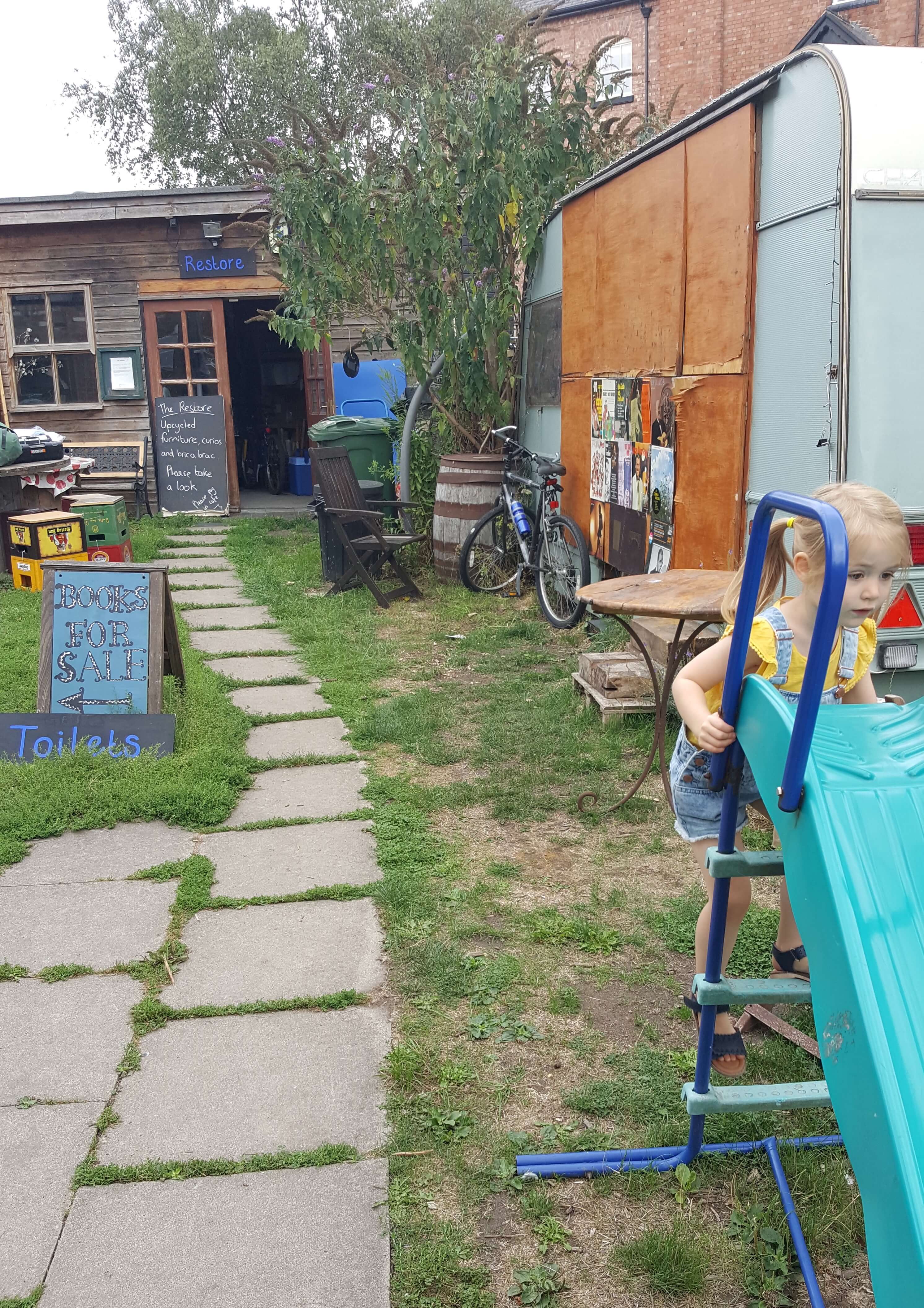 You’ll find a book hut where you can browse and purchase second hand books. Next door is the Restore shed full of upcycled furniture, curios and bric a brac. Right outside there are more toys for children and various scooters and trikes to keep little ones entertained.