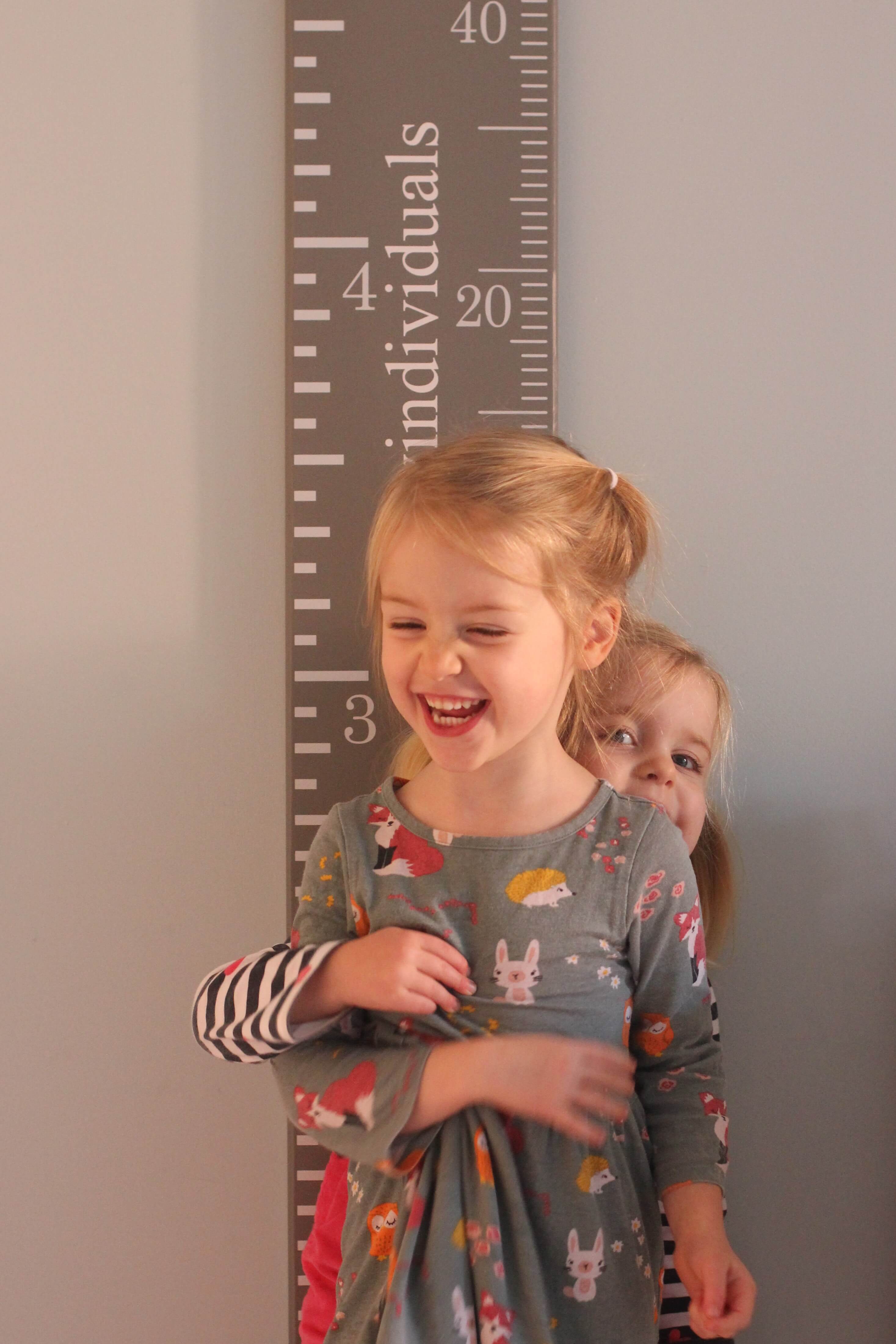 If you are looking for a beautiful family gift that will be treasured for ever and doesn’t take up loads of space, I’ve got the perfect idea for you. Fletcher and Mils hand make gorgeous wooden height rulers which can be used to track how quickly those little ones grow. When ours arrived I thought it was almost too lovely to mark and had plans for stickers or some other way to note our girls’ height. Then I saw how it could look after years of memory making. Now I can’t wait to fill it with lovely inscriptions.