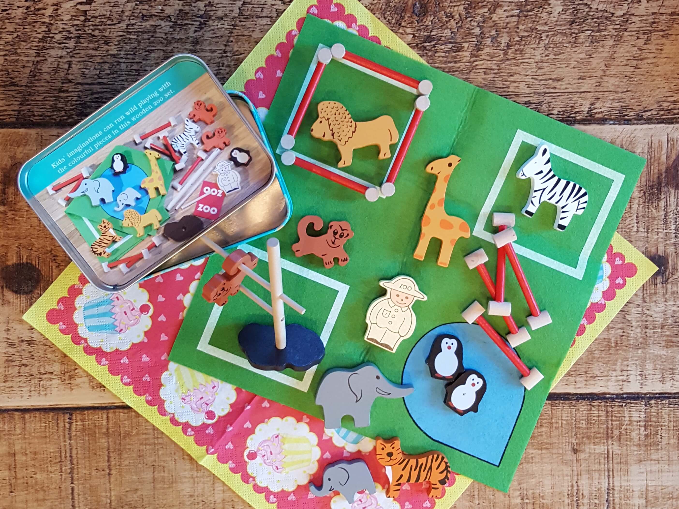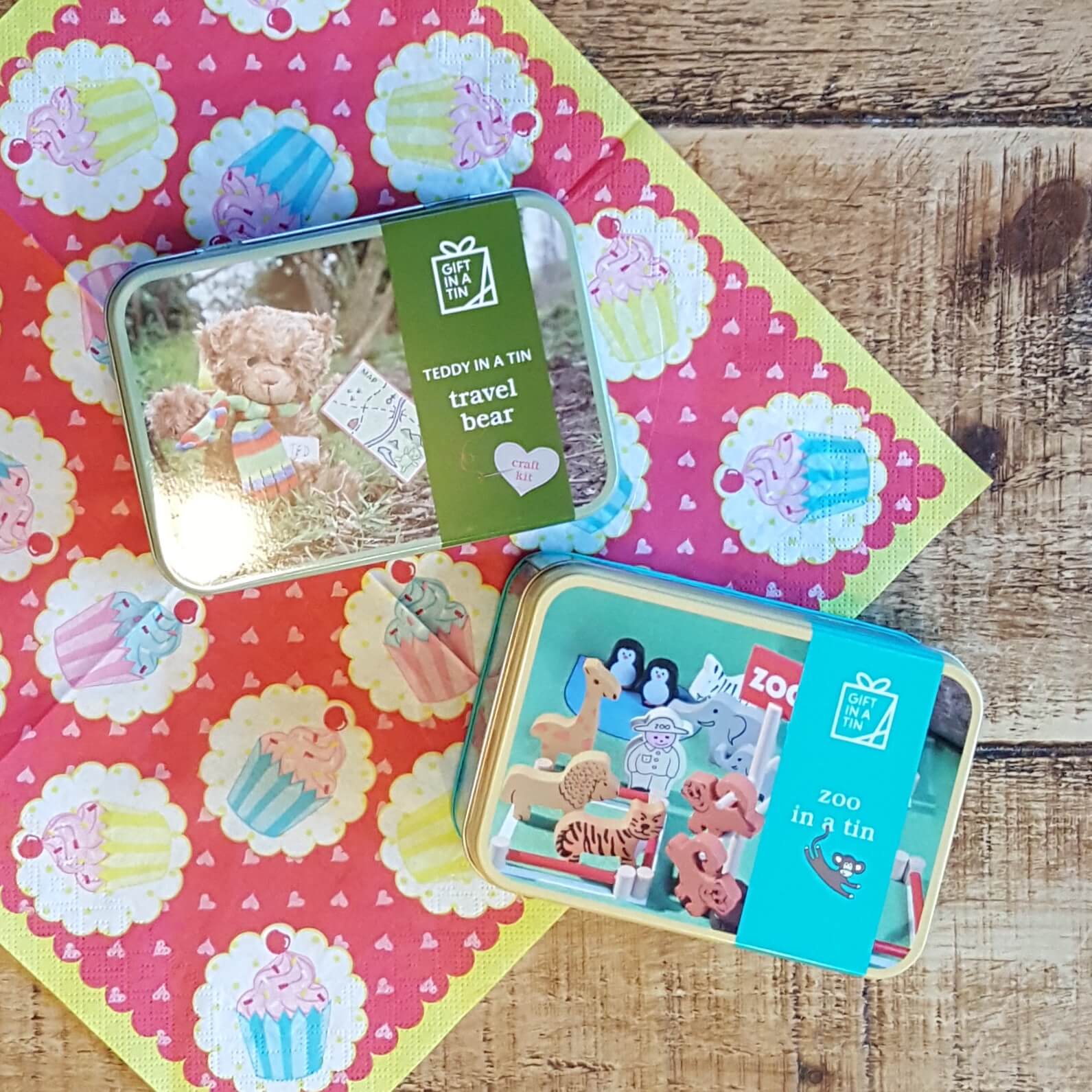 Fabulous little tins to pack for a flight or getaway. We love the little travel teddy in a tin and will be taking him Morocco later this month. As these kits from Present Mill are self contained, we may even actually make the teddy on the plane. The Zoo in a Tin, will also be perfect for the plane and I love how the wooden pieces all store away in the tin. The girls will love this mini play set.