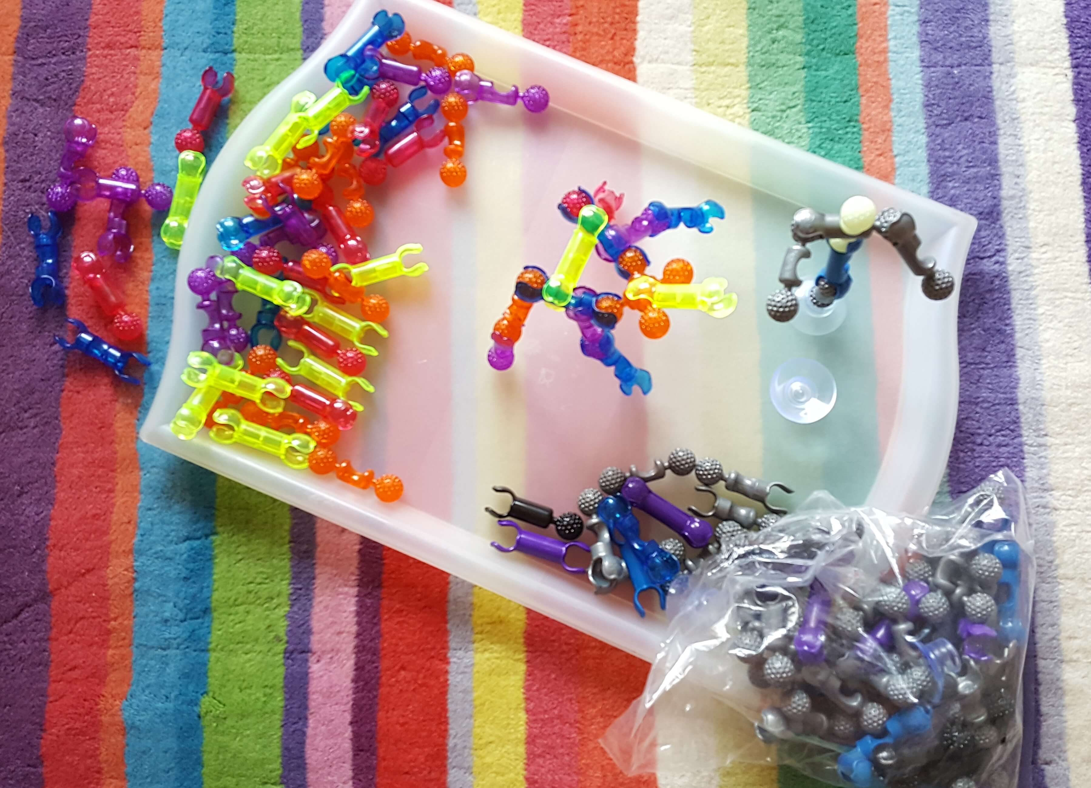My girls love to build and so will love these. Construction sets like this are perfect for open ended play and encouraging creativity. We’ve got the Creepy Glow Creatures and Sparkle Set from Gifts for Little Hands. The sets are interchangeable so I’m imagining some amazing creations. The pieces click together in so many ways and are easy to connect and pull apart.